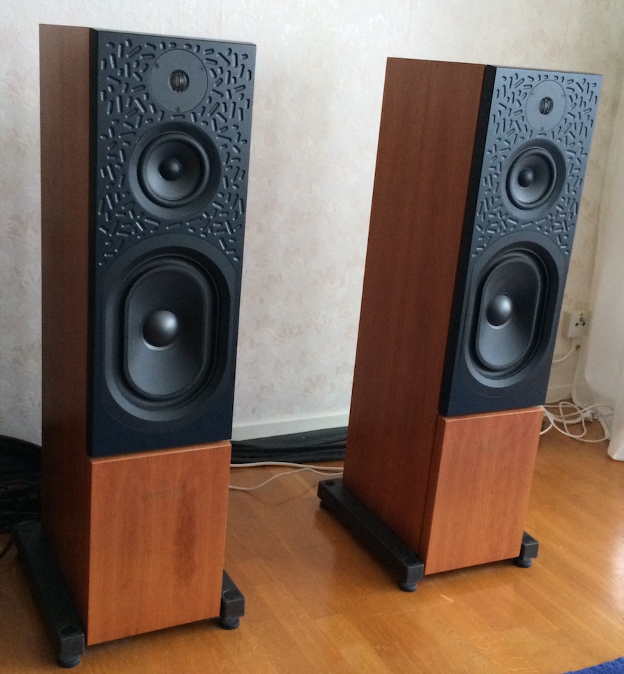 Säljer ett par fina Keltik i färgen "American Cherry". Med högtalarna följer 3 par monokort (treble, mid och bass) och en full uppsättning stereokort (treble, mid, 2*bass) + ett extra av vardera treble, mid och bass. Till högtalarna finns också tygfronter i svart. Skeets som syns på bilden ingår ej.