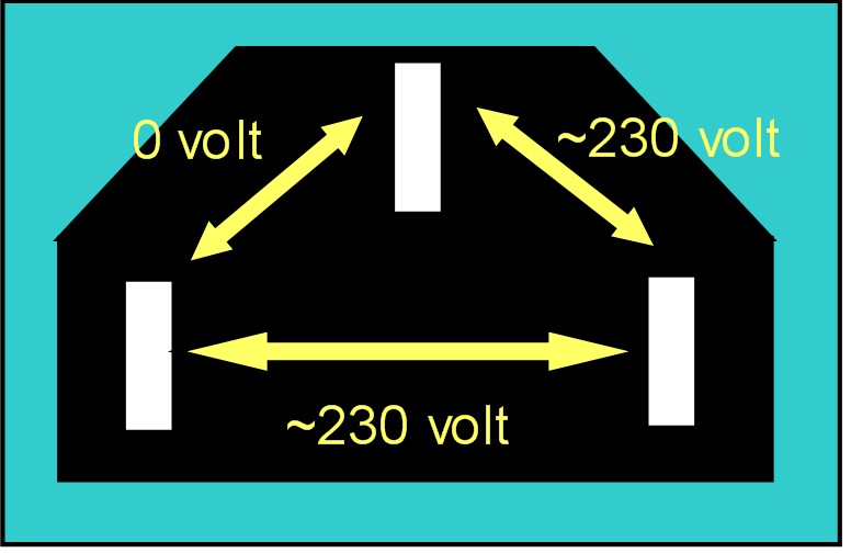 Har man inte jordade uttag så går det inte att mäta spänningen på detta sätt, då får man mäta spänningen mellan hålen och exempelvis ett vattenbärande element (som brukar ligga ungefär på jordpotential). Centralantenner kan ibland också användas som referens, men de ligger inte alltid på jordpotential. Mitt har runt 70V AC (vilket har pajat videon två gånger då jag råkat rycka ur antennsladden när den varit påslagen)!