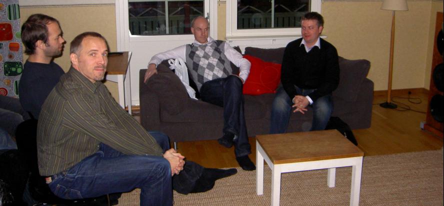 File comment: Här lyssnar från vänster: Jewa, Hardcorelinnie, Roland och Per.