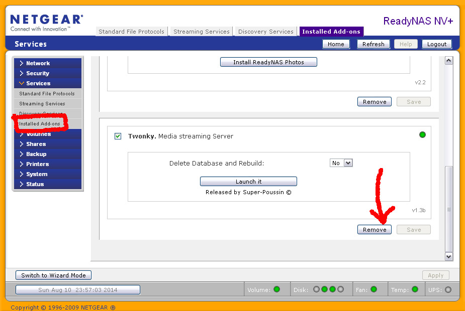 Gick det inte att avinstallera via knappen "Remove" under "Services/Installed add-ons"?
