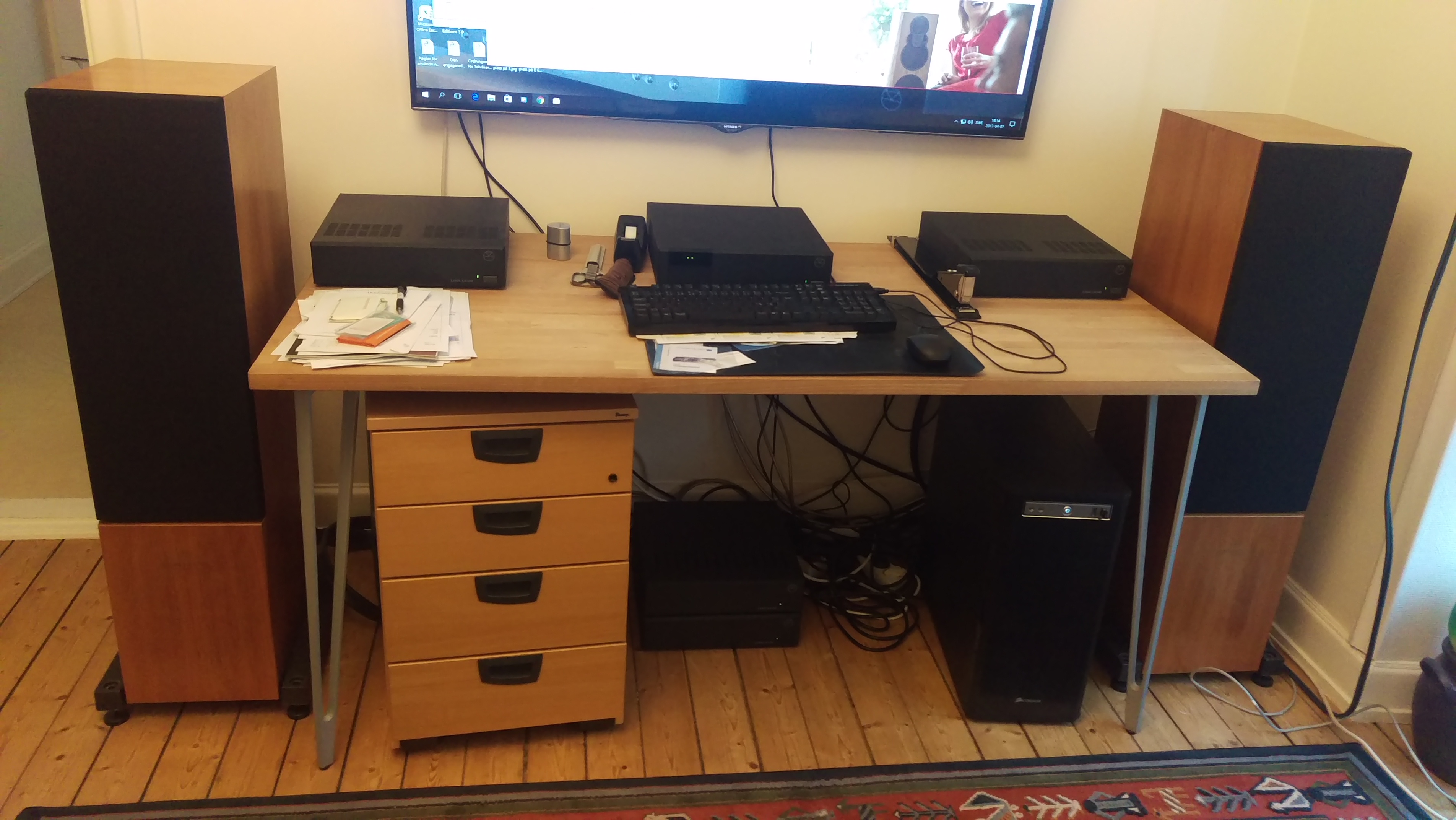 Jag har ställt upp mitt andra par Keltik som skrivbordshögtalare (bredvid skrivbordet, inte på) drivna med fyra LK140 (stereofilter) och en fräsch Kairn-pro som försteg. Perfekt för både film och musik!