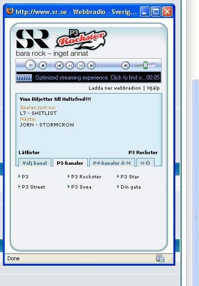 File comment: Passar på att testa forumest nya bilduppladdningsfunktion också. Så här ser SR:s webradio ut.