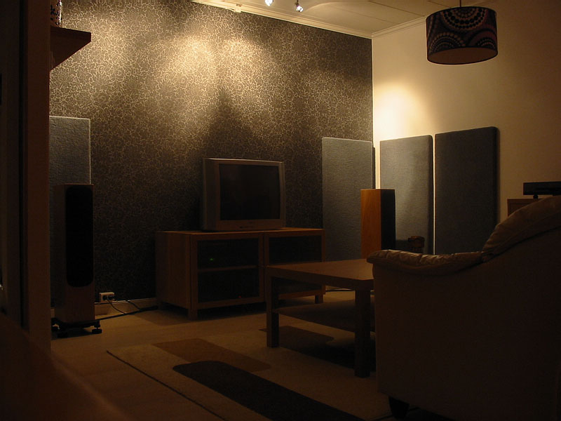 Jag har nu under en tid experimenterat med att dämpa olika väggar i rummet och främst väggen bakom högtalarna och sidoväggarna. Jag upplevde en viss förändring av ljudet som jag vill beskriva som ett "snällare" övre register och i och med detta så blev även basgången lättare att följa.